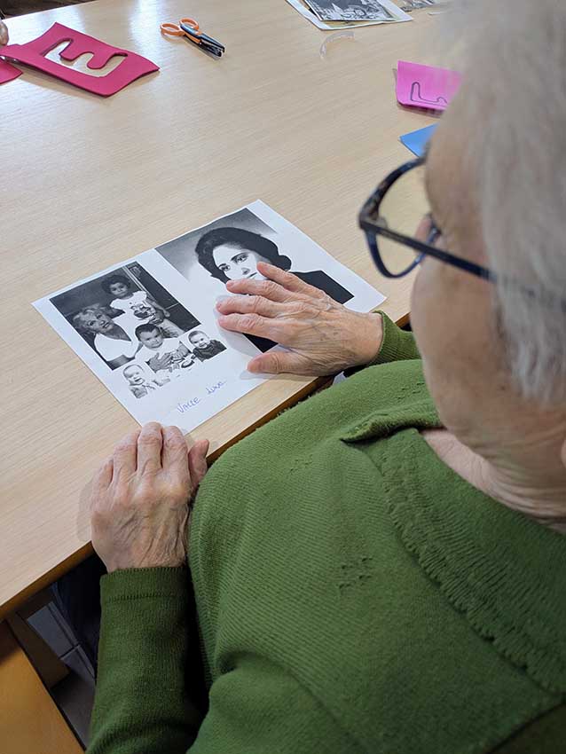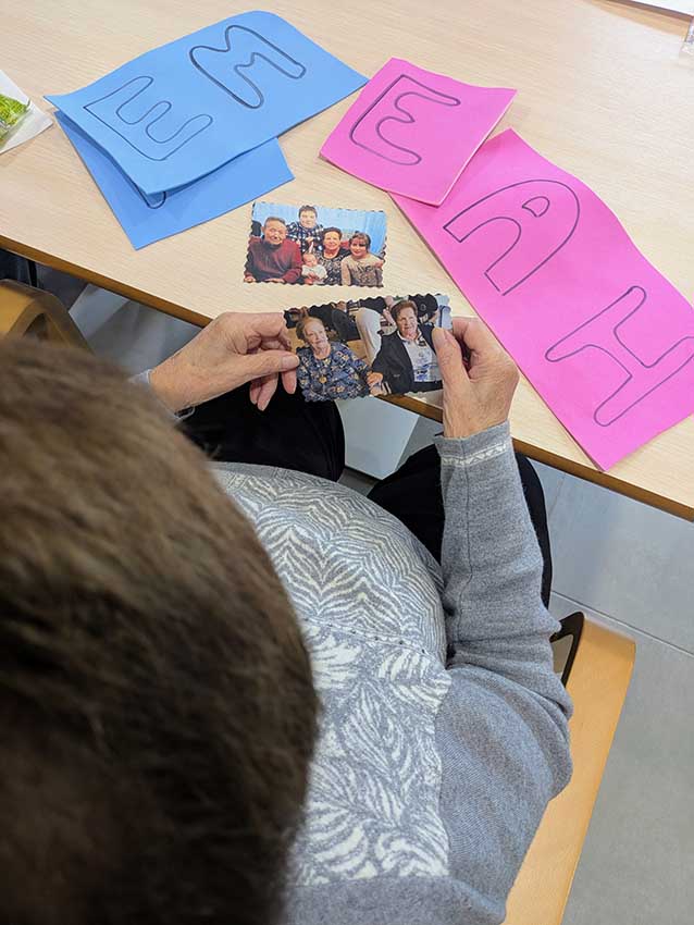 Por su parte, el Centro de Día de Bergara trabajó la memoria colectiva mediante la construcción de un mural con fotografías significativas aportadas por las personas usuarias.