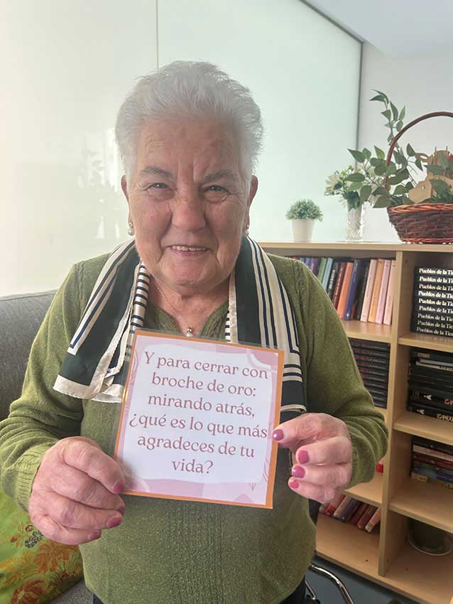 La Residencia Joxe Miel Barandiaran de Durango acogió una dinámica de reminiscencia en la que se repartieron tarjetas con preguntas formuladas para despertar recuerdos. A partir de ellas, las personas residentes desarrollaron una tertulia en la que recordaron momentos y circunstancias de su pasado y evocaron anécdotas, canciones, olores y sensaciones de diferentes etapas de su vida.