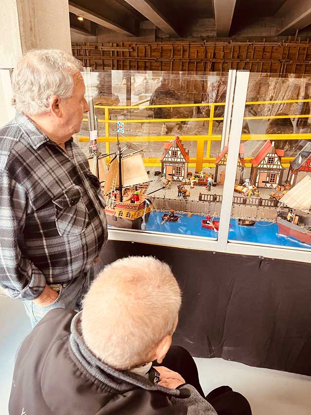 El 14 de noviembre, un grupo de personas usuarias de la Residencia Txurdinagabarri de Bilbao disfrutó de una salida muy curiosa: una visita a la exposición de «Clicks» de Playmobil organizada en el Yacimiento del Convento de San Francisco. La actividad, pensada para estimular la memoria y promover el disfrute cultural, permitió a las personas usuarias revivir escenas históricas en miniatura, protagonizadas por las conocidas figuritas de plástico.