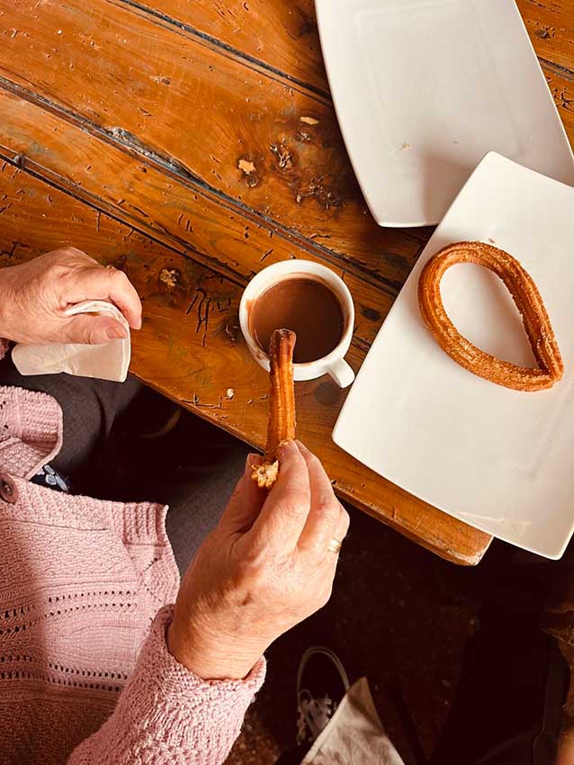 Goiza gosari berezi batekin amaitu zen, esparru berean dagoen Jardin Secreto tabernan. Txokolatea eta txurroak izan ziren protagonistak, barre eta berriketa artean.